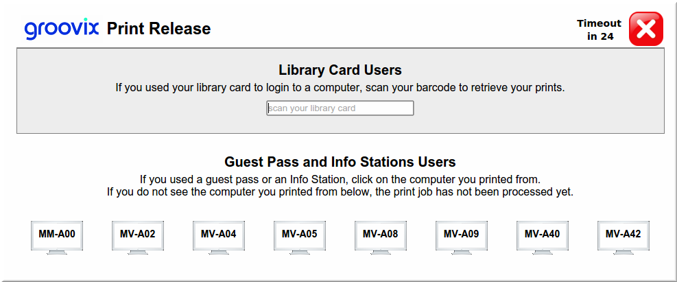 Patrons can release their own jobs at a self-service kiosk. We support Jamex coinbox hardware with options to accept coins, cash, stored value cards or credit cards. If you have another brand of coinbox hardware give us a call at 888-323-1742 to ask about compatibility.