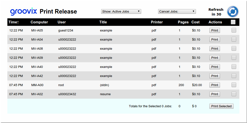 Groovix print management software can help control printing costs in multiple customizable ways.